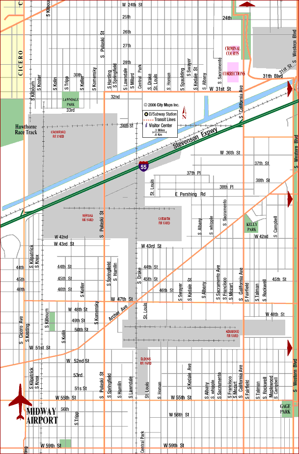 Entre la Harlem hasta la Laramie y de la 59 a la 66 , estas son las coordenadas del barrio del Aeropuerto de Midway